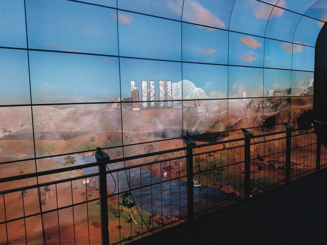 Das Foto zeigt eine Dystopie für das Jahr 2100 im „Zeittunnel“ in der Klima Arena in Sinsheim, die die Entwicklung von Klima und Umweltschutz visuell überzeugend darstellt (Foto: Rolf Kickuth).