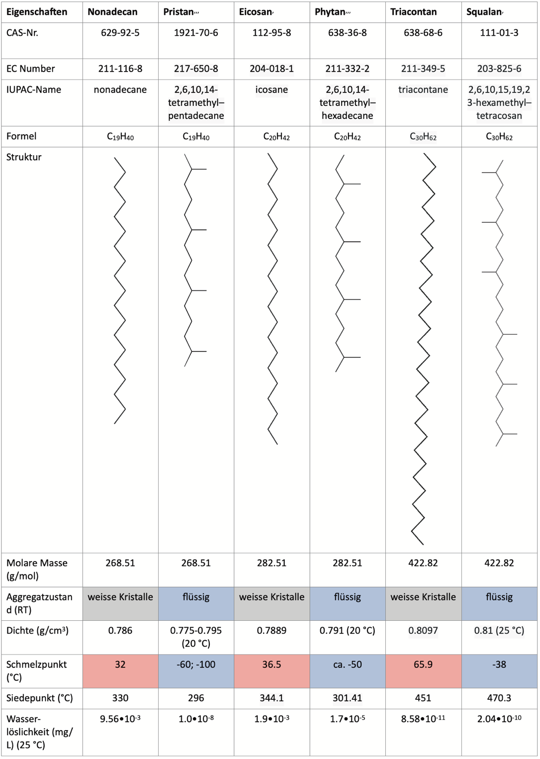 Besonderheiten einiger biogener Alkane/Paraffine im Vergleich zu linearen Alkanen