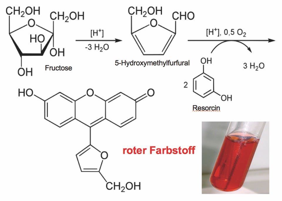 SELIWANOFF-Reaktion zum Nachweis von Fruktose.