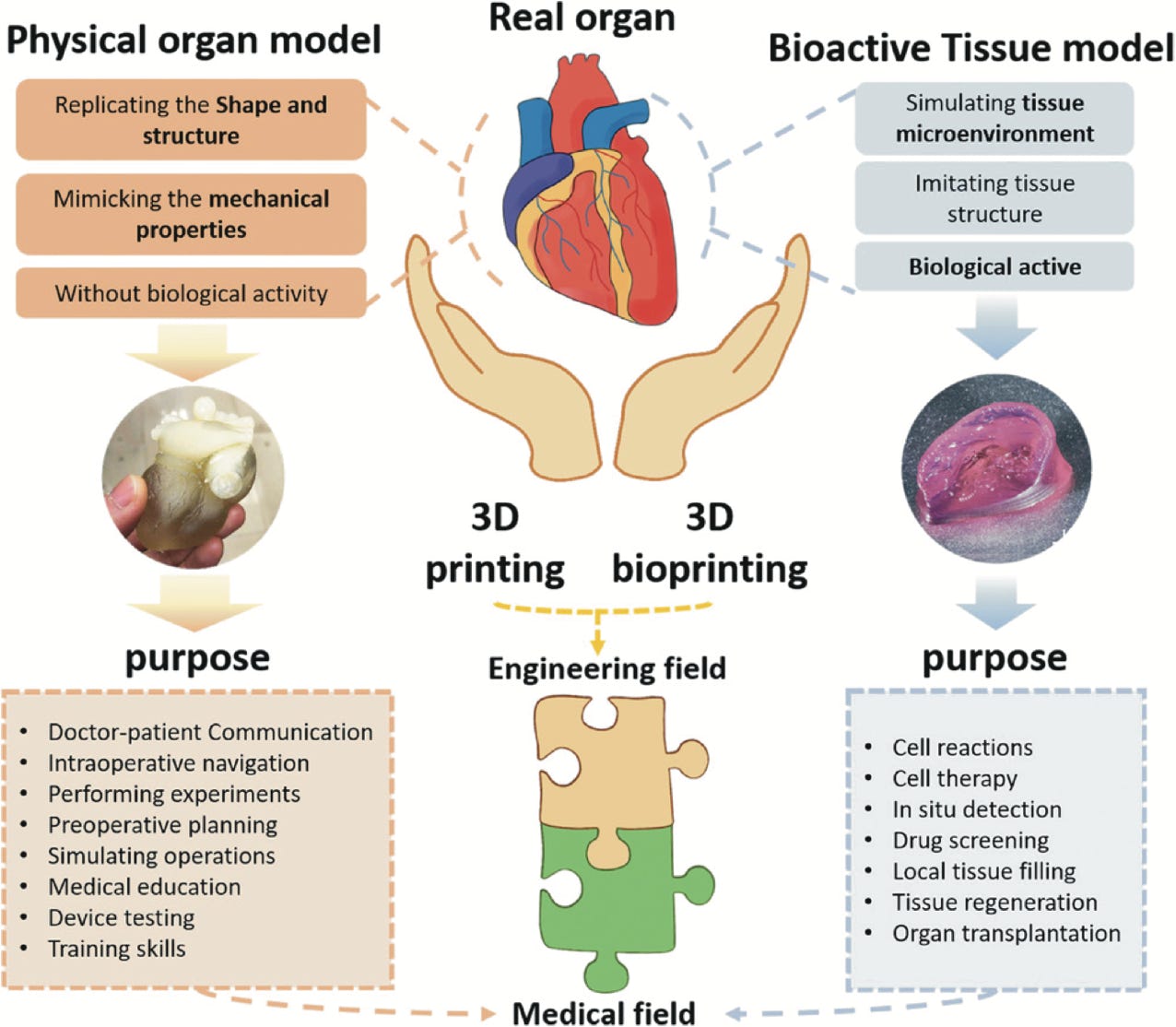 Unterschied zwischen Darstellung und Funktion eines Organmodells (links) gegenüber einem biologisch aktiven Gewebe-3D-gedruckten Modells (Abb.: Wikipedia / Jin, Z. et al. CC BY-SA 4.0).