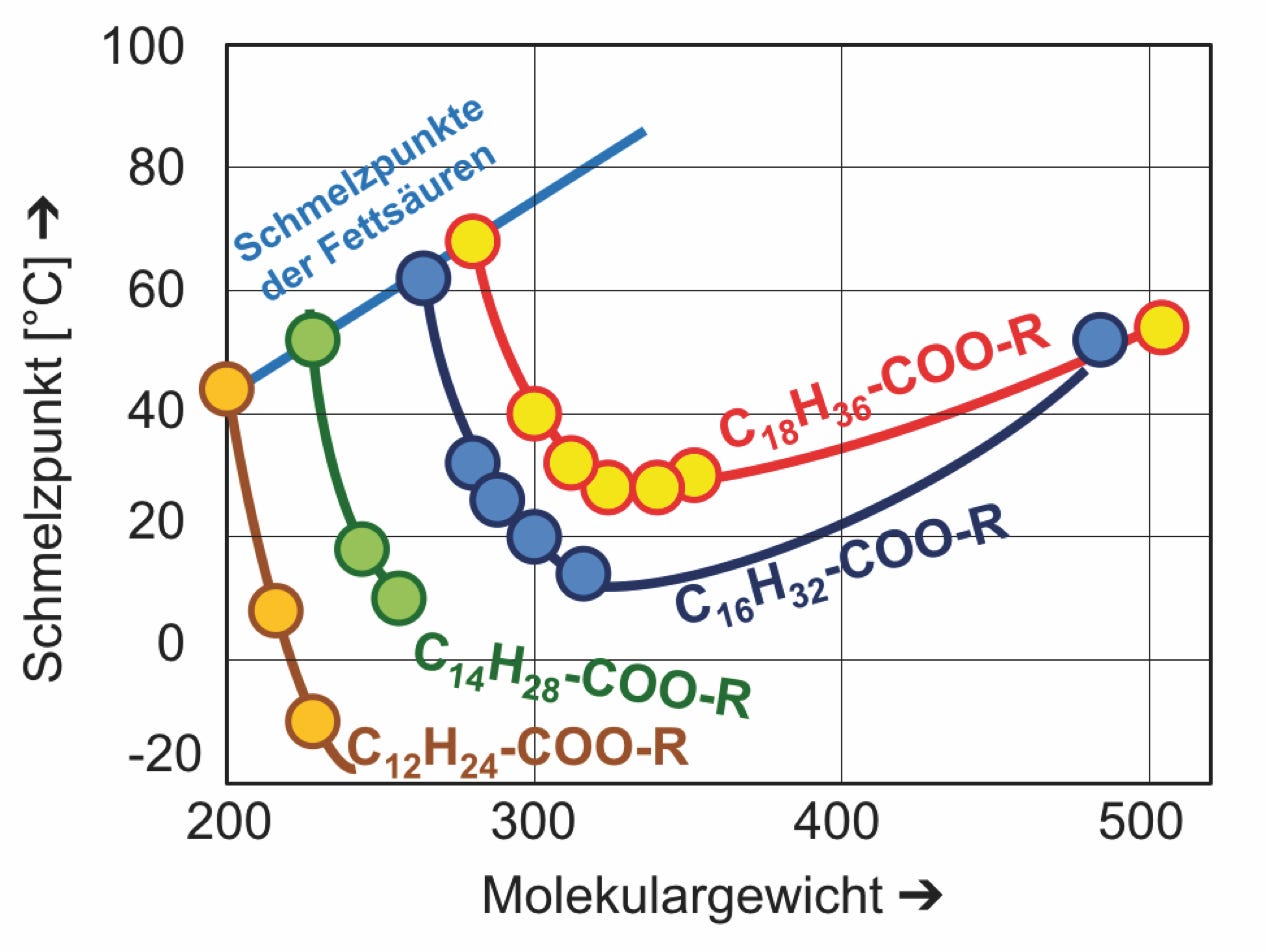 Schmelzpunkte der Fettsäure-n-Alkylester