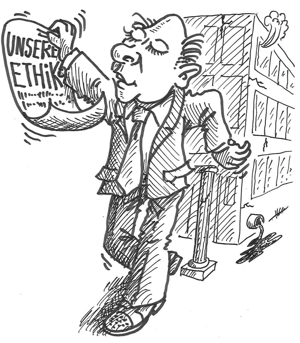 Unternehmens-Ethik: Vom Papier zur Umsetzung (Karikatur: Hasenpusch).