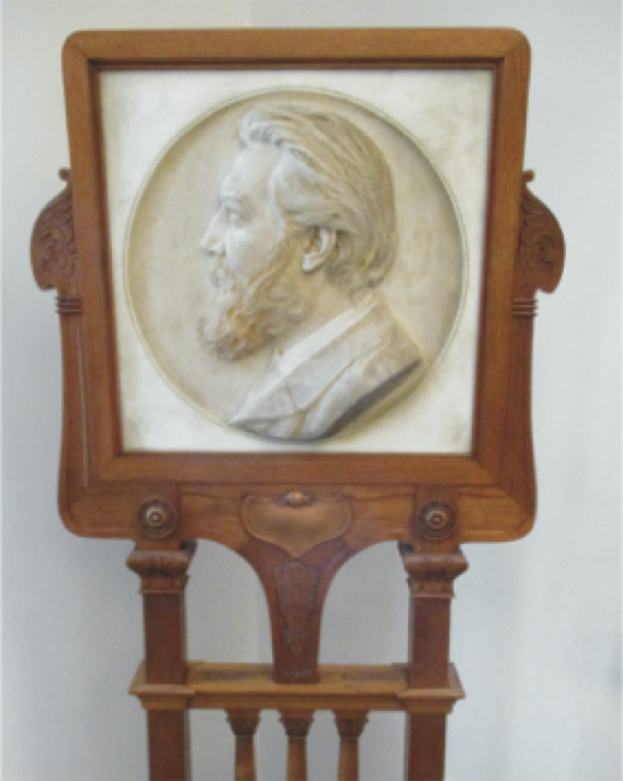 Relief-Porträt aus Marmor von Wilhelm Ostwald, geschaffen vom Leipziger Bildhauer Carl Ludwig Seffner (1861-1932) im Museum (Labor) Wilhelm Ostwald Park Großbothen (Foto: Schwedt).