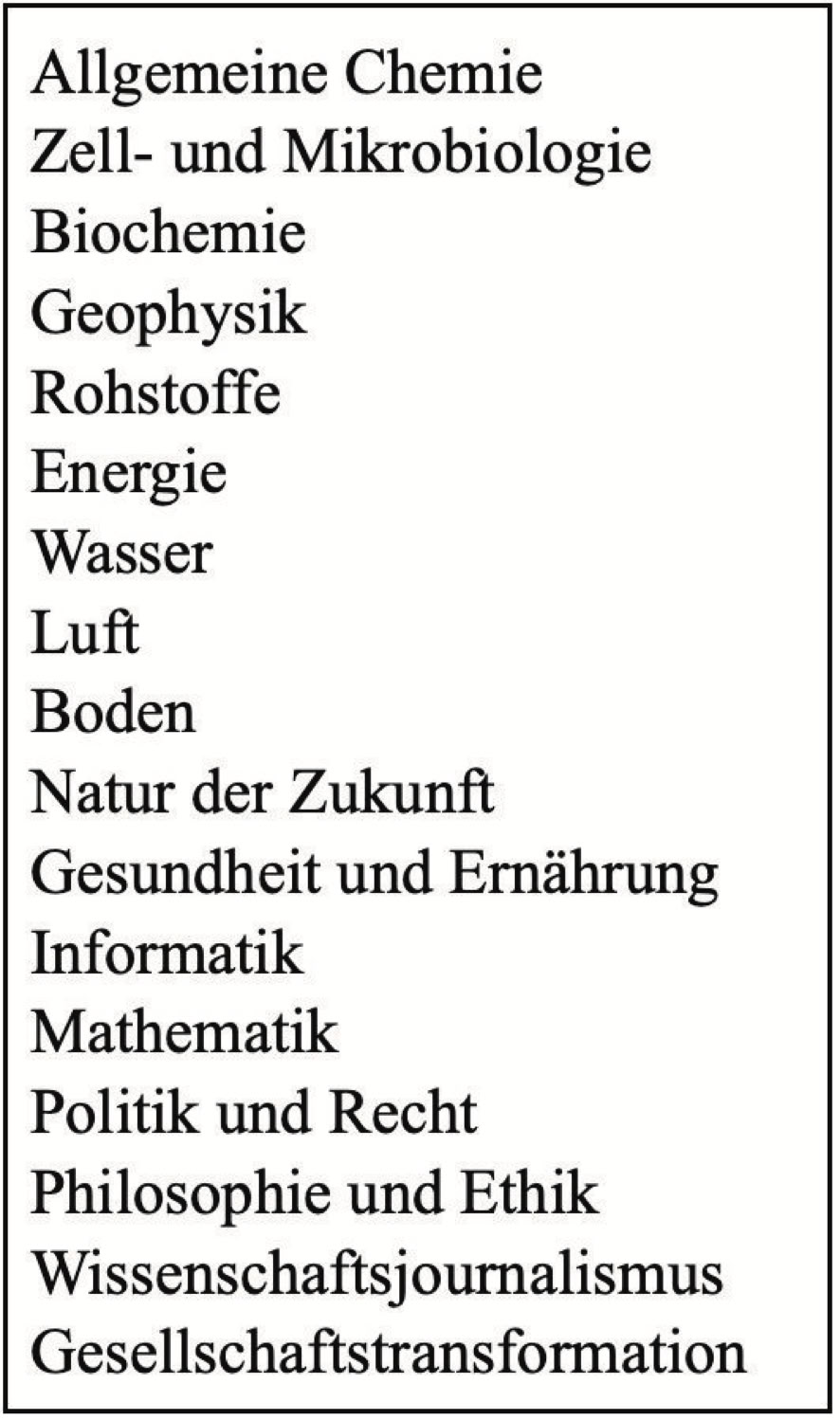 Themen im Ökologie-Schnupperstudium.