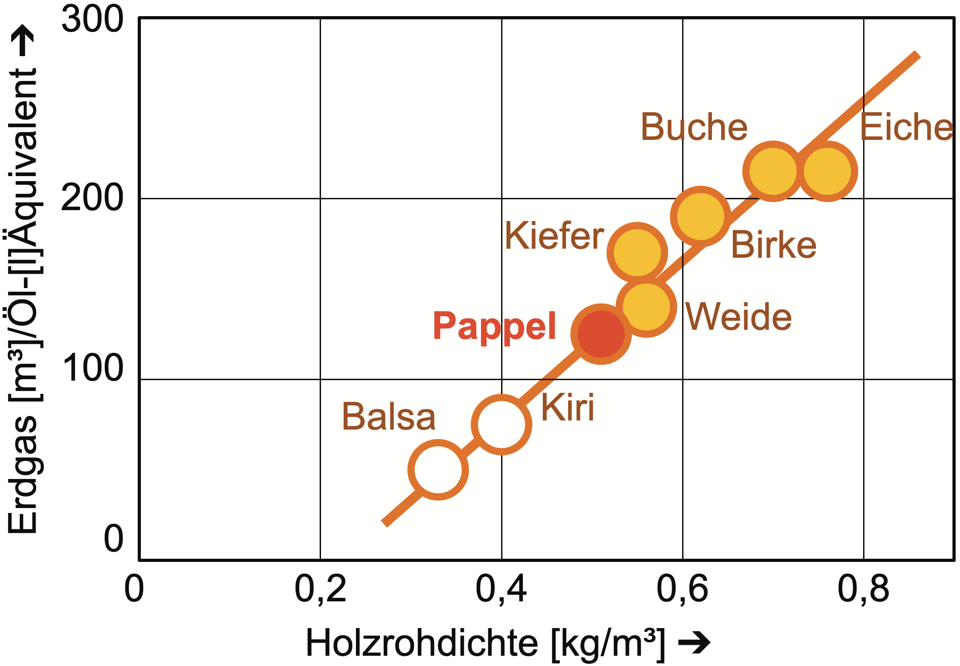 Erdgas- bzw. Heizöl-Ersatz durch Holzarten.