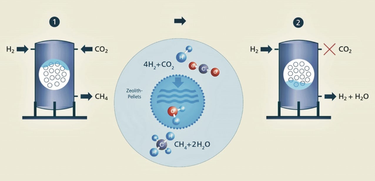 Sorptionsverstärkte Methanisierung: Befüllung, chemische Reaktion und Trocknung und Regeneration (Abb.: Empa).