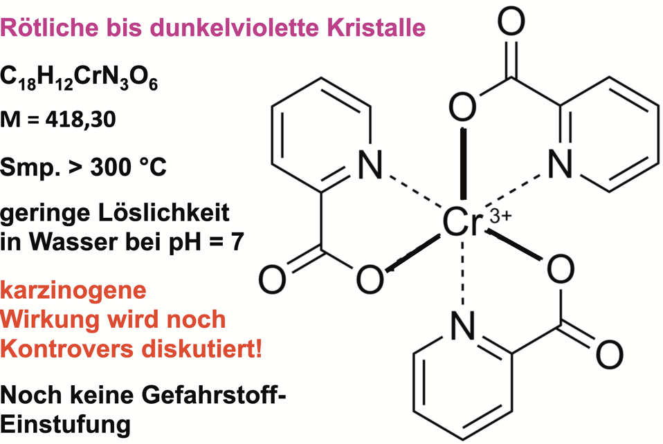 Struktur und Eigenschafen von Chrom(III)-picolinat.