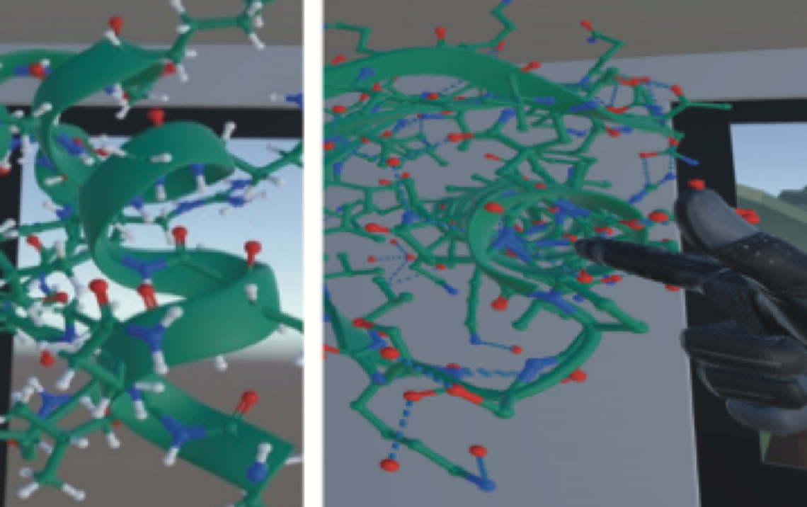 Blick auf (links) und in (rechts) eine α-Helix in der Virtuellen Realität (Stand 3).